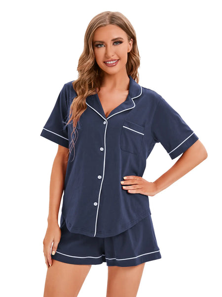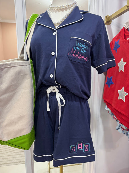 100% cotton button down top with drawstring waist shorts. Sizes XS-2X