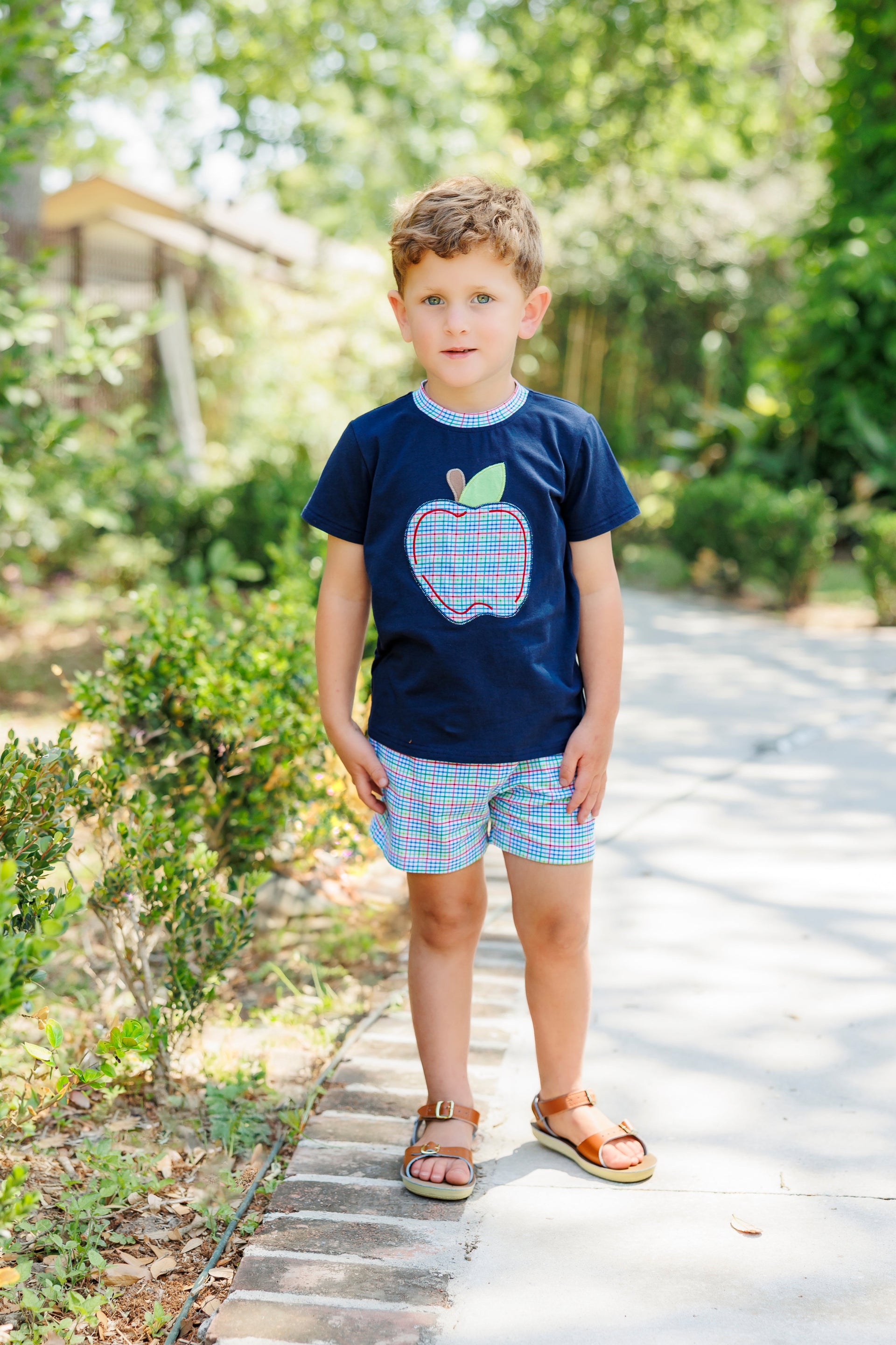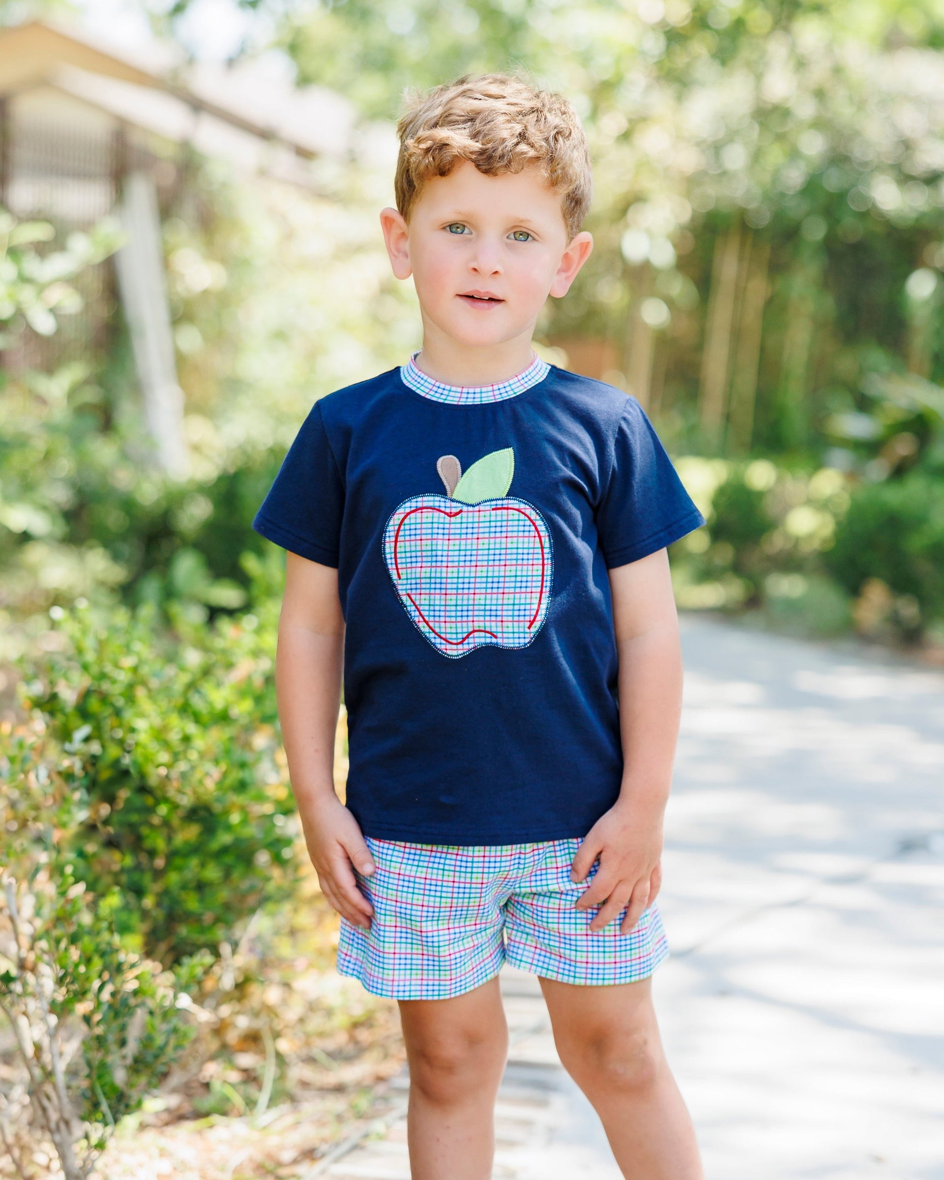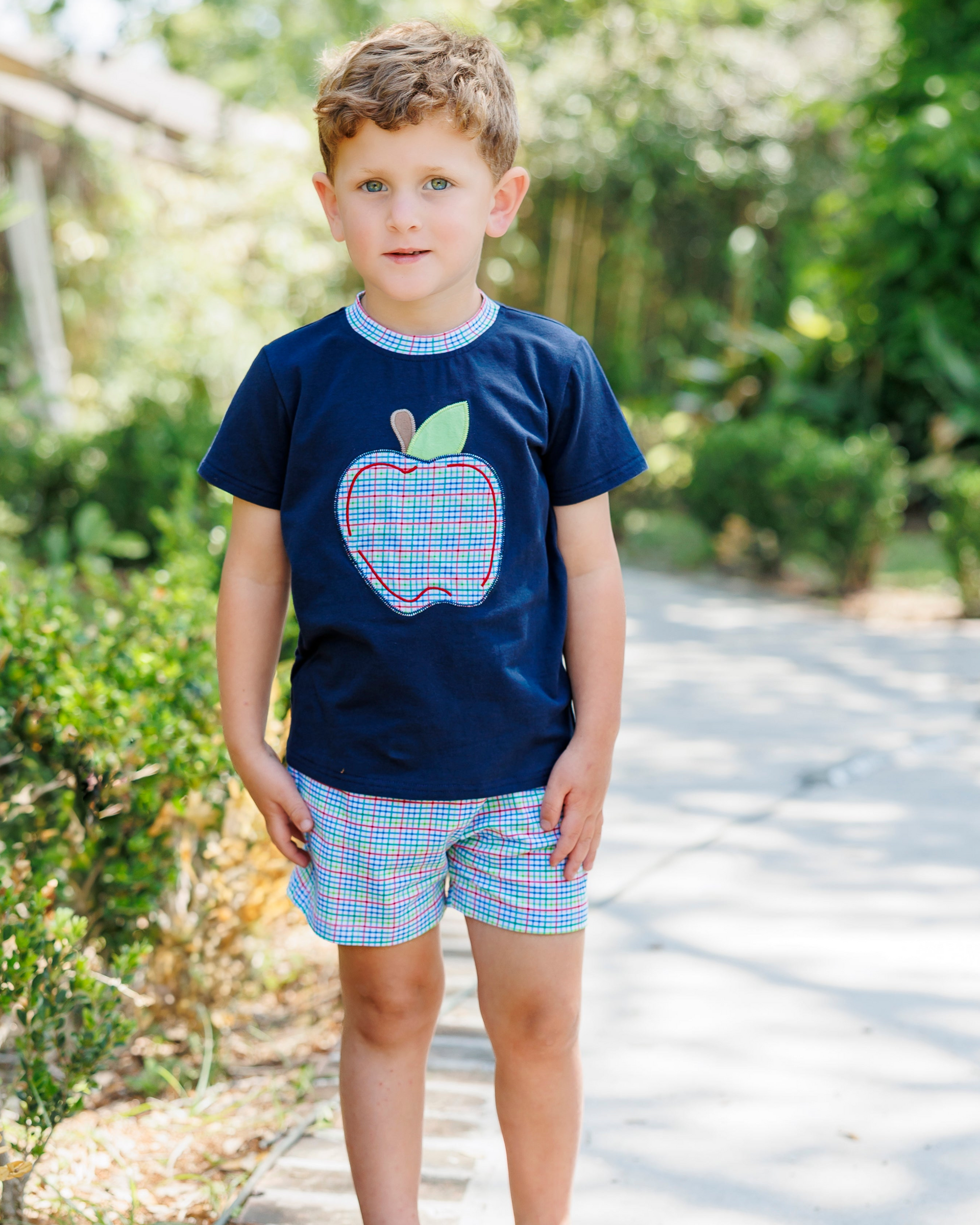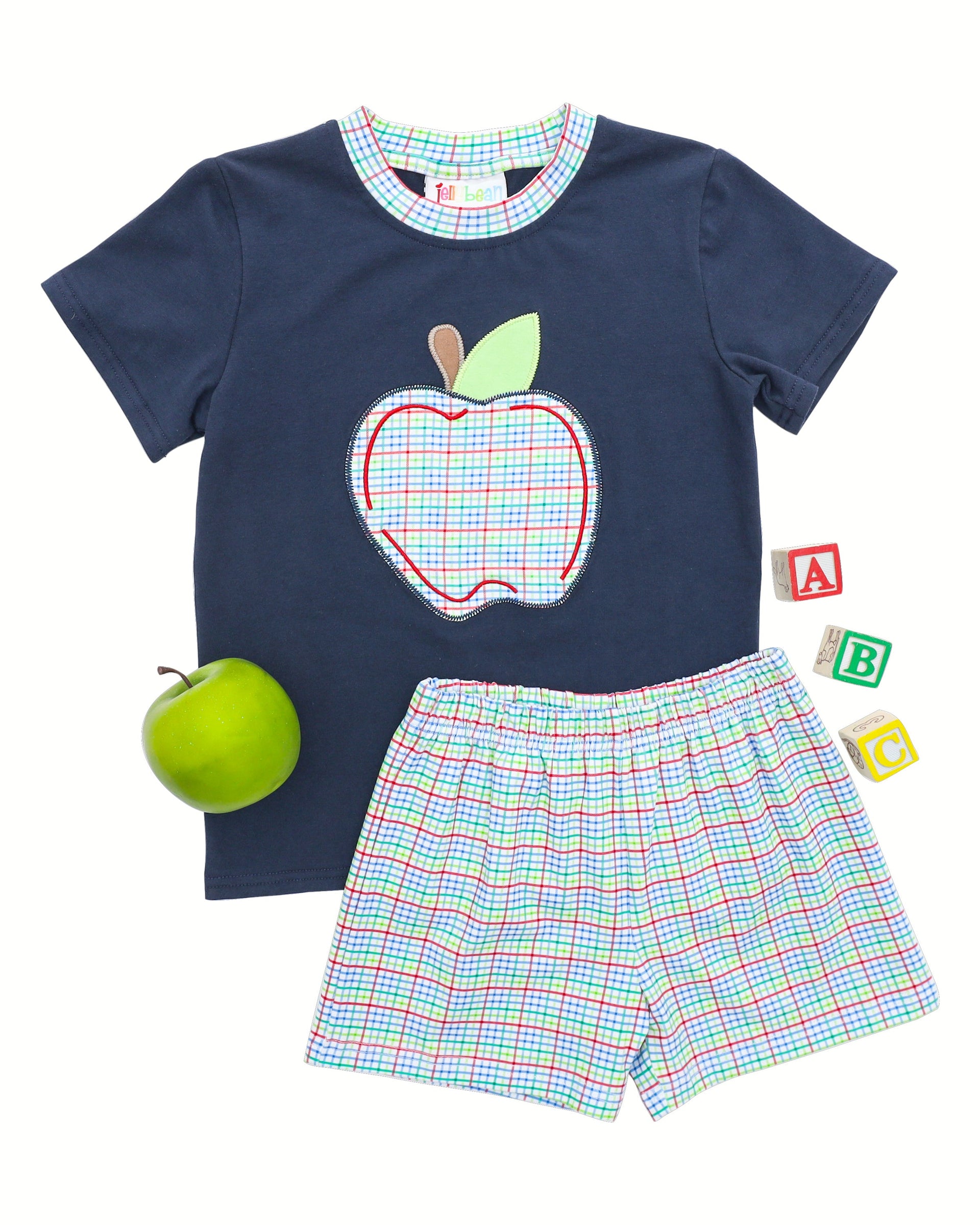 Primary Plaid Apple Short Set Boys