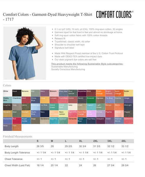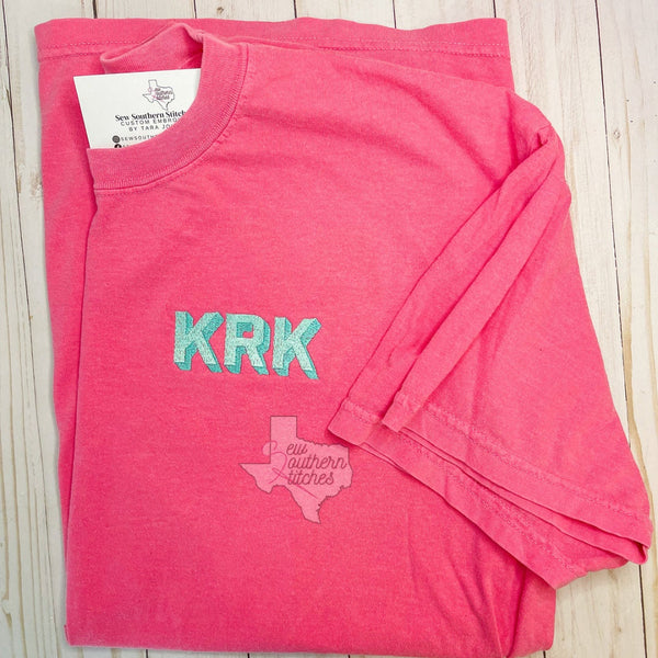 Comfort colors adult tshirt includes your initials embroidered on the left chest. Please list initials in the order of First, Middle, Last. one, two, or three initials can be used.
