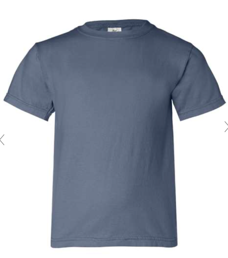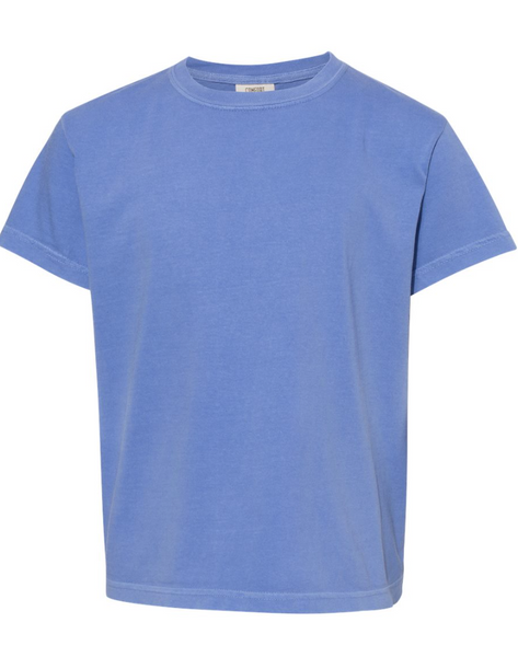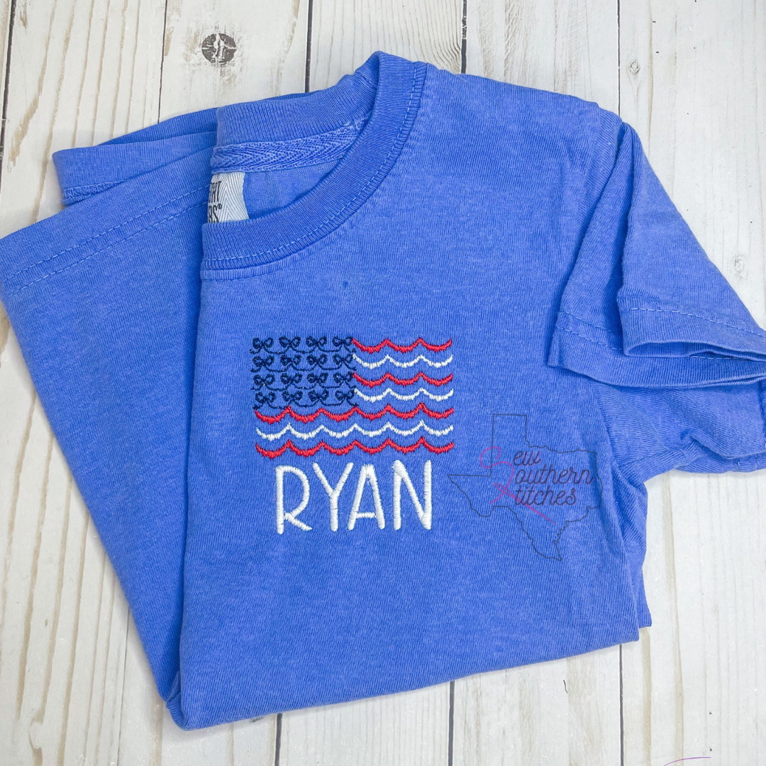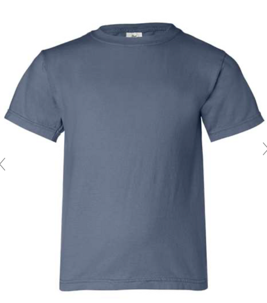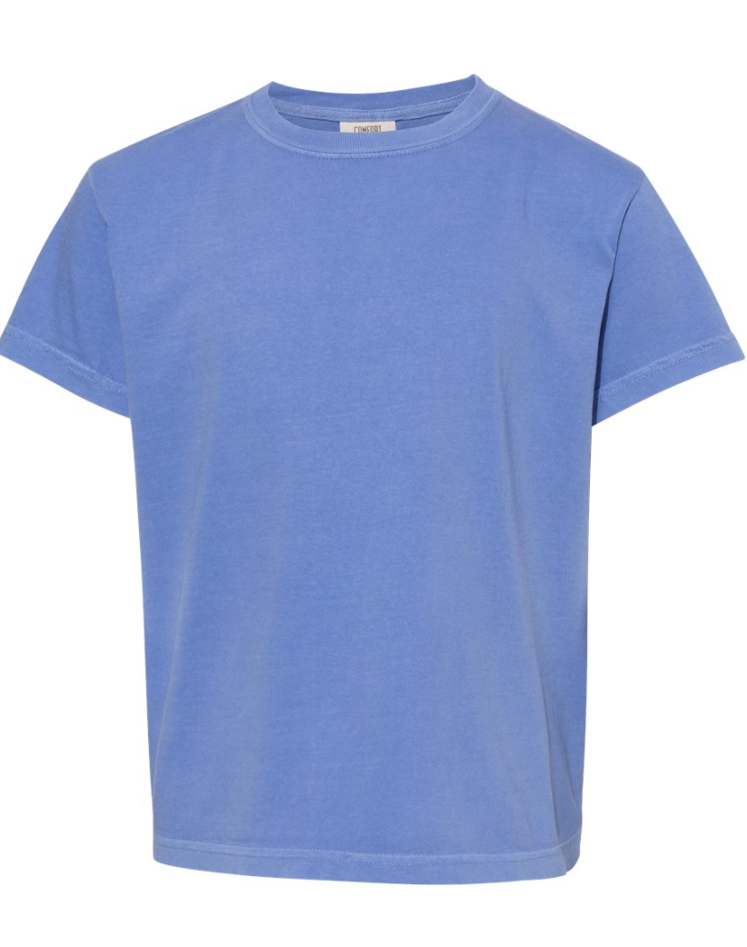 Youth comfort color short sleeve tshirt with either scallop bow flag or regular flag on left chest